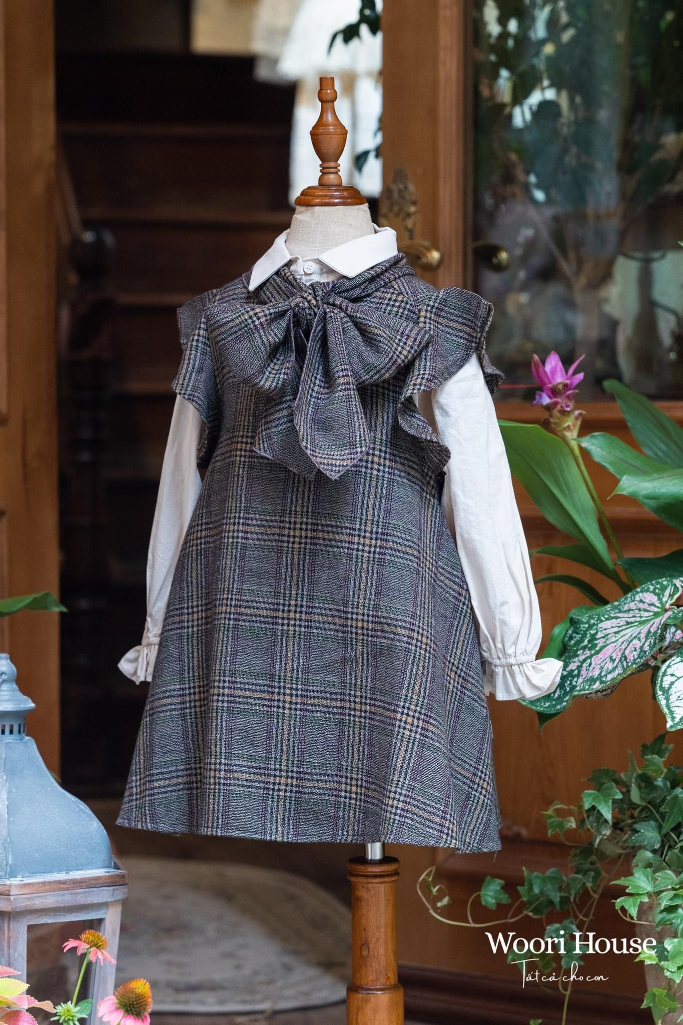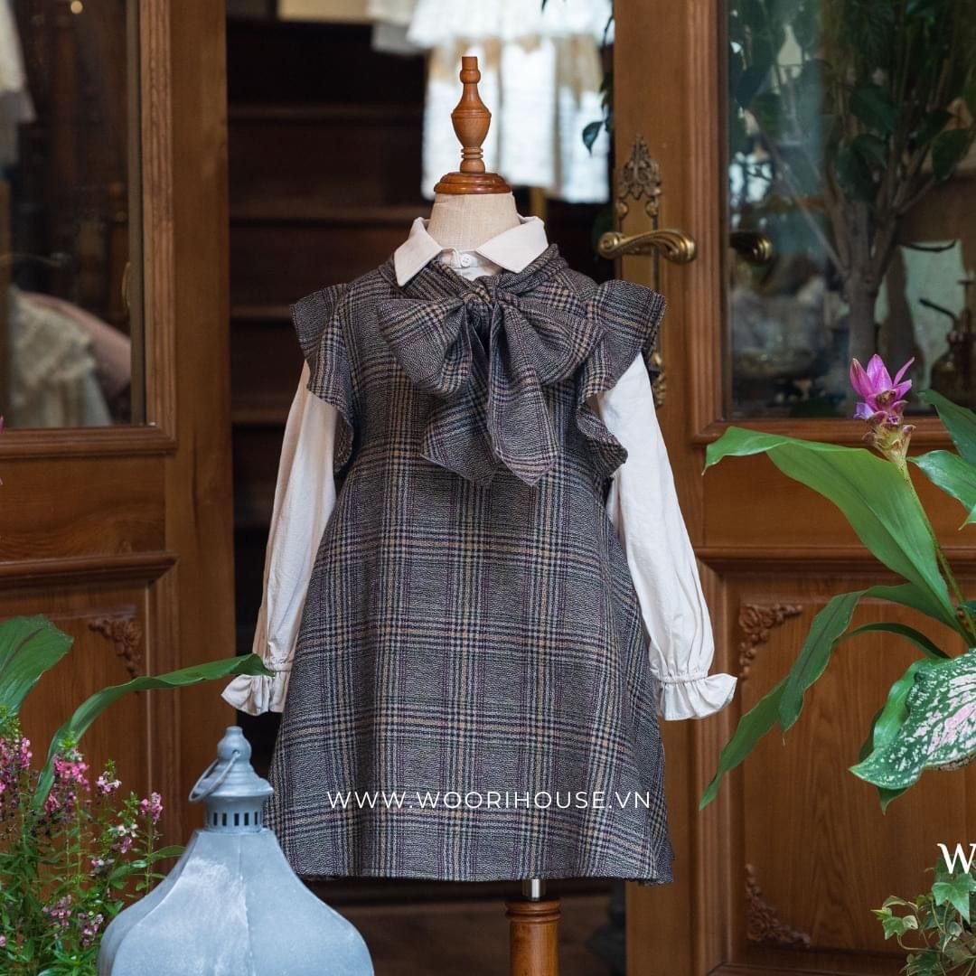 NN Váy kẻ Marie nơ cổ