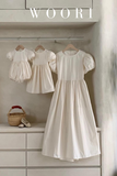 Set đồ Solle có thiết kế basic với dáng xòe bồng xếp li đơn giản nhưng không hề đơn điệu, tay áo bồng cổ tròn rất dễ mặc. Điểm đacwj biệt ở set đồ lần này là có thêm thiết kế dạng rompers dành cho các bé từ sơ sinh (3-6m), bé yêu mặc vào cưng lắm mẹ nha. Mẹ và bé cũng sẽ không thể bỏ qua chi tiết rút nhún buộc dây nơ cut-out phía sau lưng giúp 2 mẹ con càng thêm xinh xắn, lạ mắt và duyên dáng hơn. Tuỳ theo sở thích mẹ và bé có thể chỉnh phần cut-out này nhé.