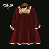 𝐅𝐢𝐞𝐬𝐭𝐚 đặc biệt hút mắt bởi chất liệu nhung đỏ rượu sang trọng với độ óng ánh huyền ảo cùng dáng váy xòe nhẹ, tay áo dài chuông nhẹ, và cổ sen. Gấu váy, tay áo hay cổ áo đều được phối thêm viền ren lượn sóng ánh gold giúp thiết kế thêm nổi bật. Thiết kế có điểm nhấn đắt giá là vạt ren đáp ngực thêu hoa tinh tế, tất cả tạo nên một tổng thể tinh tế, hài hoà, lộng lẫy mà thanh lịch.