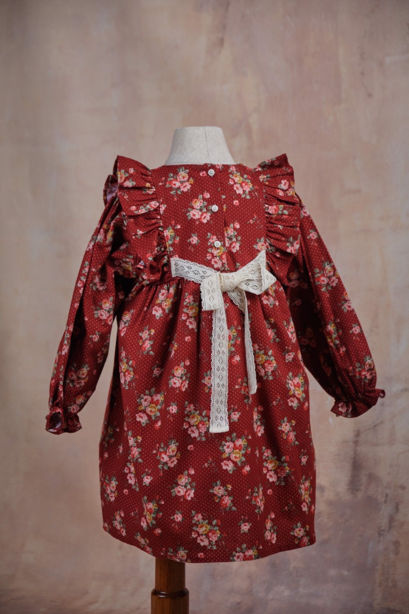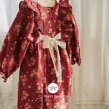 🌹 Floral Scarlet có thiết kế dáng baby cực đáng yêu với phần thân váy xếp li nhẹ tạo độ xòe nhẹ nhàng nữ tính, cổ tròn cùng tay áo dài bồng bo chun diềm bèo nhún điệu đà. Thêm vào đó, trên hai vai áo là chi tiết hai vạt cánh tiên bèo nhún, kết hợp với hàng cúc xinh xắn đằng sau lưng váy cùng dải nơ ren thêu hoa thắt eo điệu đà làm tăng phần bắt mắt cho thiết kế. Đặc biệt hơn trên phần thân váy còn được điểm một đường ren thêu cao cấp họa tiết lượn sóng màu trắng hệt như những bông tuyết rơi vương nhẹ trên áo tạo nên khung cảnh thật thơ mộng.