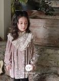 ✨ 𝑺𝒕𝒆𝒍𝒍𝒂 𝑫𝒆𝒘 là thiết kế dáng suông lửng vô cùng thoải mái, tay áo dài bồng bo chun và chuông nhẹ về phía cổ tay kết hợp cùng phần yếm ren chữ V thêu hoa tinh xảo trên ngực áo. Phầm yếm ren đặc biệt với phần cổ áo diềm bèo nhún thêu họa tiết bông hoa nhỏ xinh duyên dáng, phần giữa là chi tiết ren thêu tinh xảo bông hồng leo cùng những chiếc lá đang uốn lượn như muốn nở rộ và phần diềm là lớp ren phối cotton dập nổi ba tầng làm cho thiết kế mang chút nét cổ điển của trang phục quý tộc Châu Âu xưa.