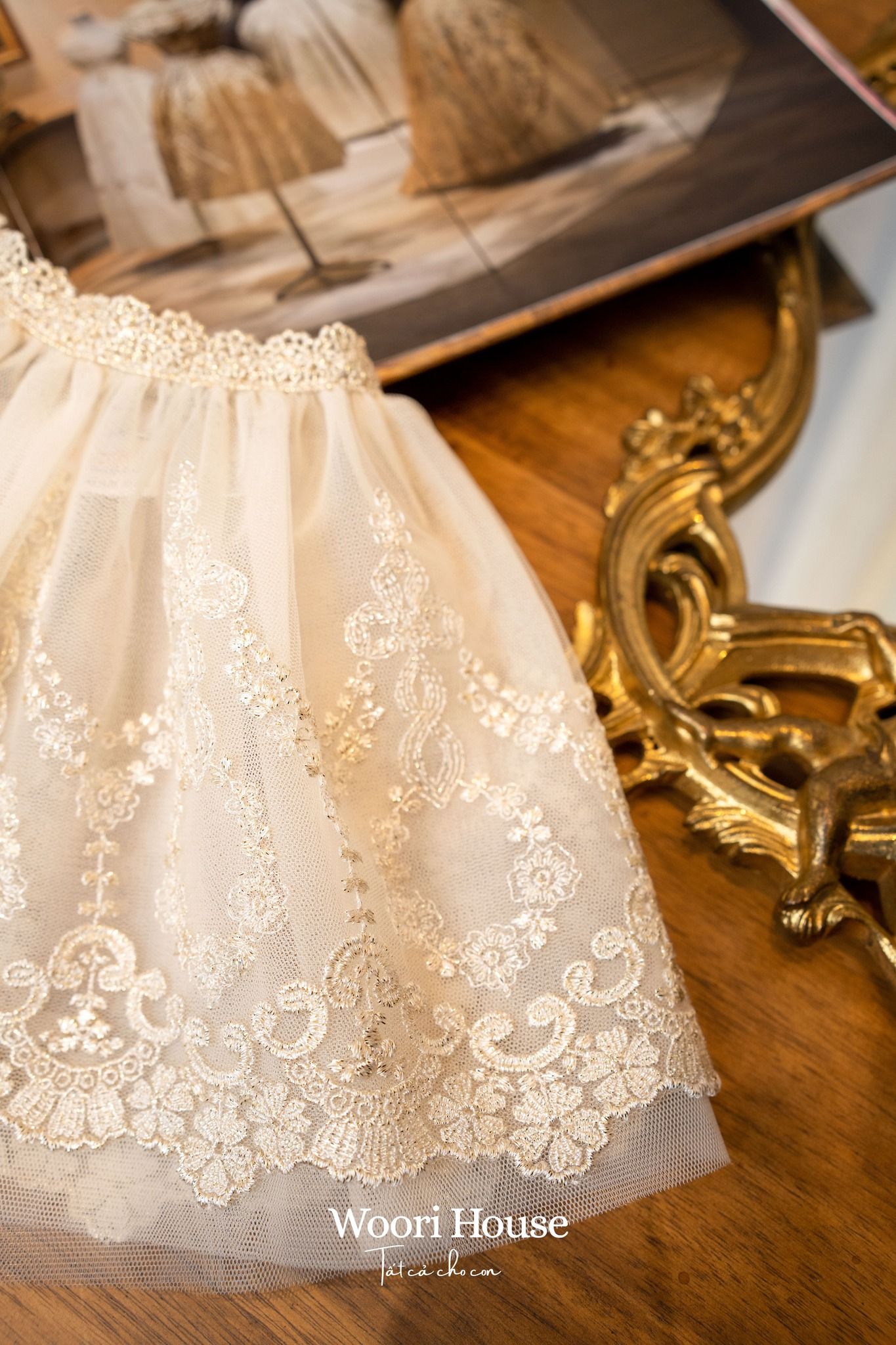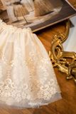 Yếm thân 𝑬𝒍𝒍𝒊𝒆 với chất liệu organza cao cấp bóng nhẹ màu vàng ánh hồng cùng thiết kế layer nhiều tầng tạo độ bồng, tầng trên được thêu họa tiết ren tinh tế, đây sẽ là items hot hit nâng tầm mọi trang phục của bé yêu.